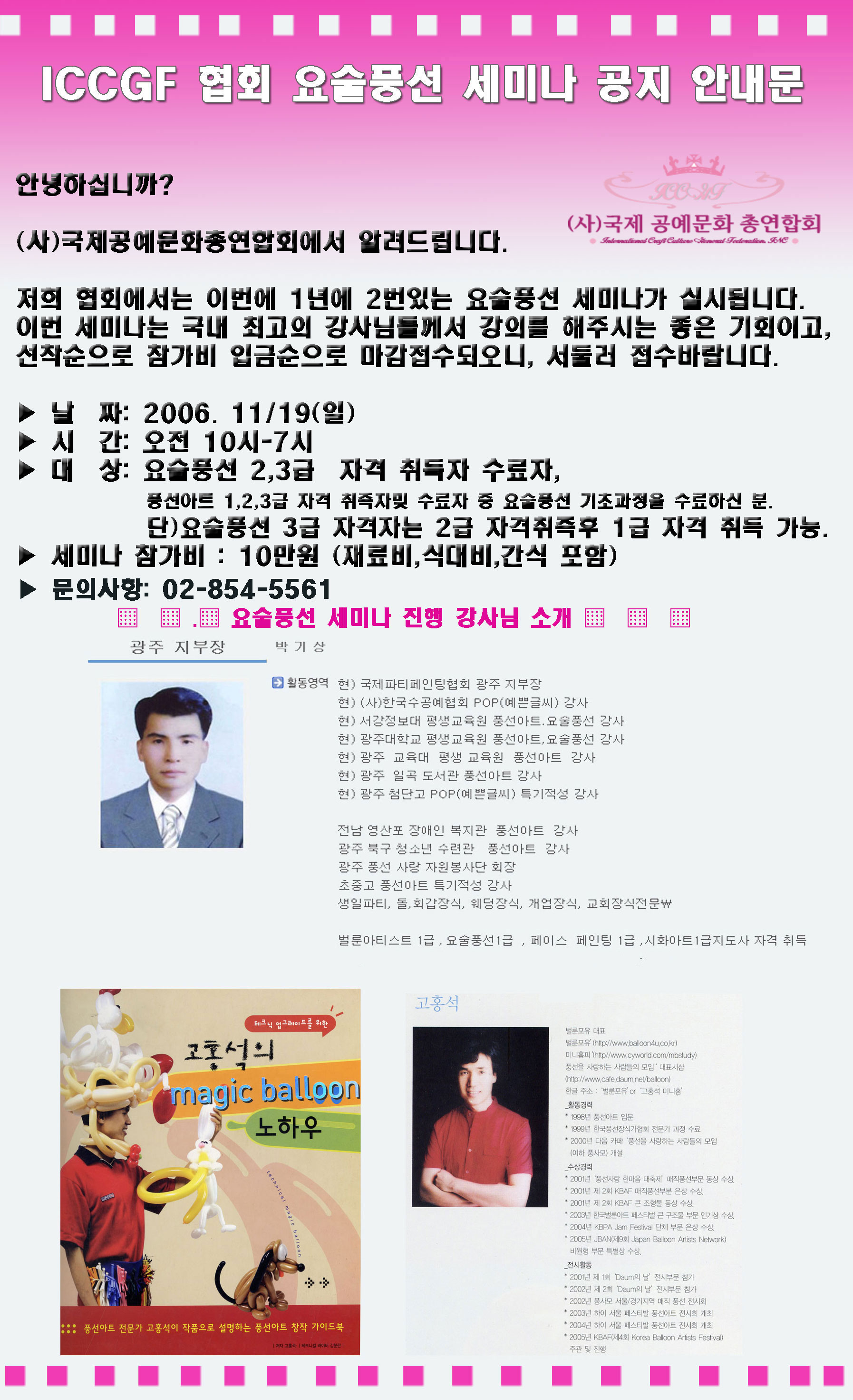 7 ¼¼¹Ì³ª  [Çùȸ] 11/19(ÀÏ) ¿ä¼údz¼± ¾÷±×·¹À̵å (1±Þ)ÀÚ°Ý Ãëµæ ¼¼¹Ì³ª ¾È³»   ICCGF   2006/11/01